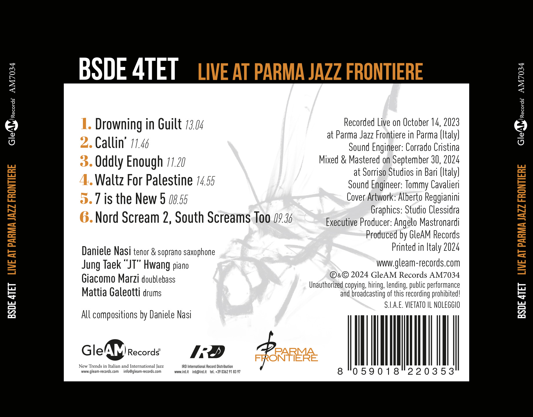 GleAM Records is proud to announce the release of Live at Parma Jazz Frontiere, the new album by the BSDE 4tet, available in CD and digital download/streaming format from December 13th, 2024 and distributed by IRD International and Believe Digital. The release will be preceded by the single Nord Scream 2, South Screams Too (December 6th, 2024).