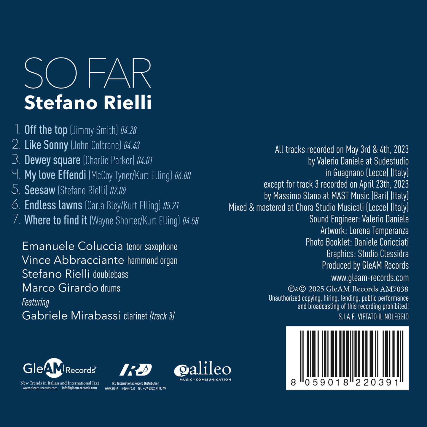 GleAM Records is proud to announce the release of So Far, the first album by Italian bassist and composer Stefano Rielli, available on CD and digital download/streaming from September 19th, 2025 and distributed by IRD International, Galileo Music and Believe Digital.